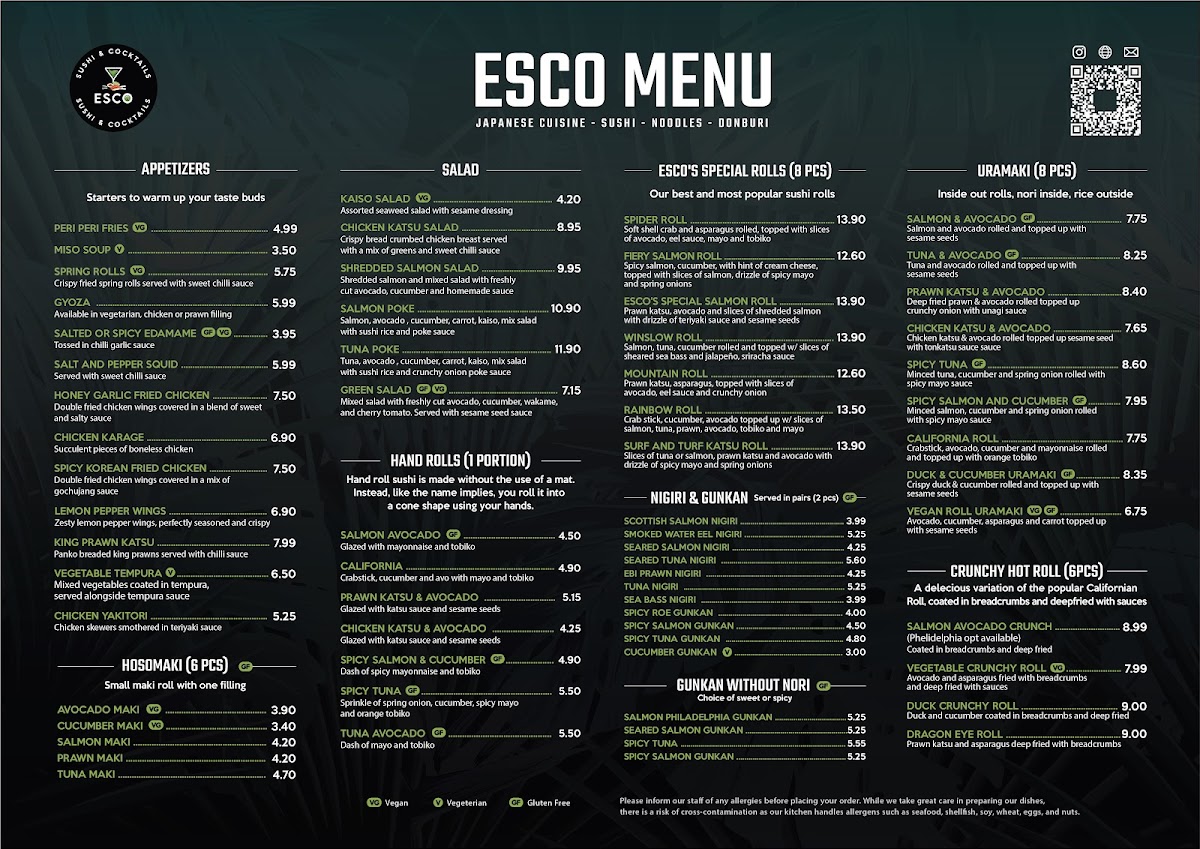 In summary, Esco - Sushi, Noodles & Cocktails, delivers a memorable and diverse culinary experience, making it an excellent choice for those in Fleet seeking high-quality sushi, noodle dishes, and expertly crafted cocktails.